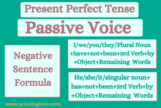 Negative Sentence Formula of Present Perfect Tense Passive Voice